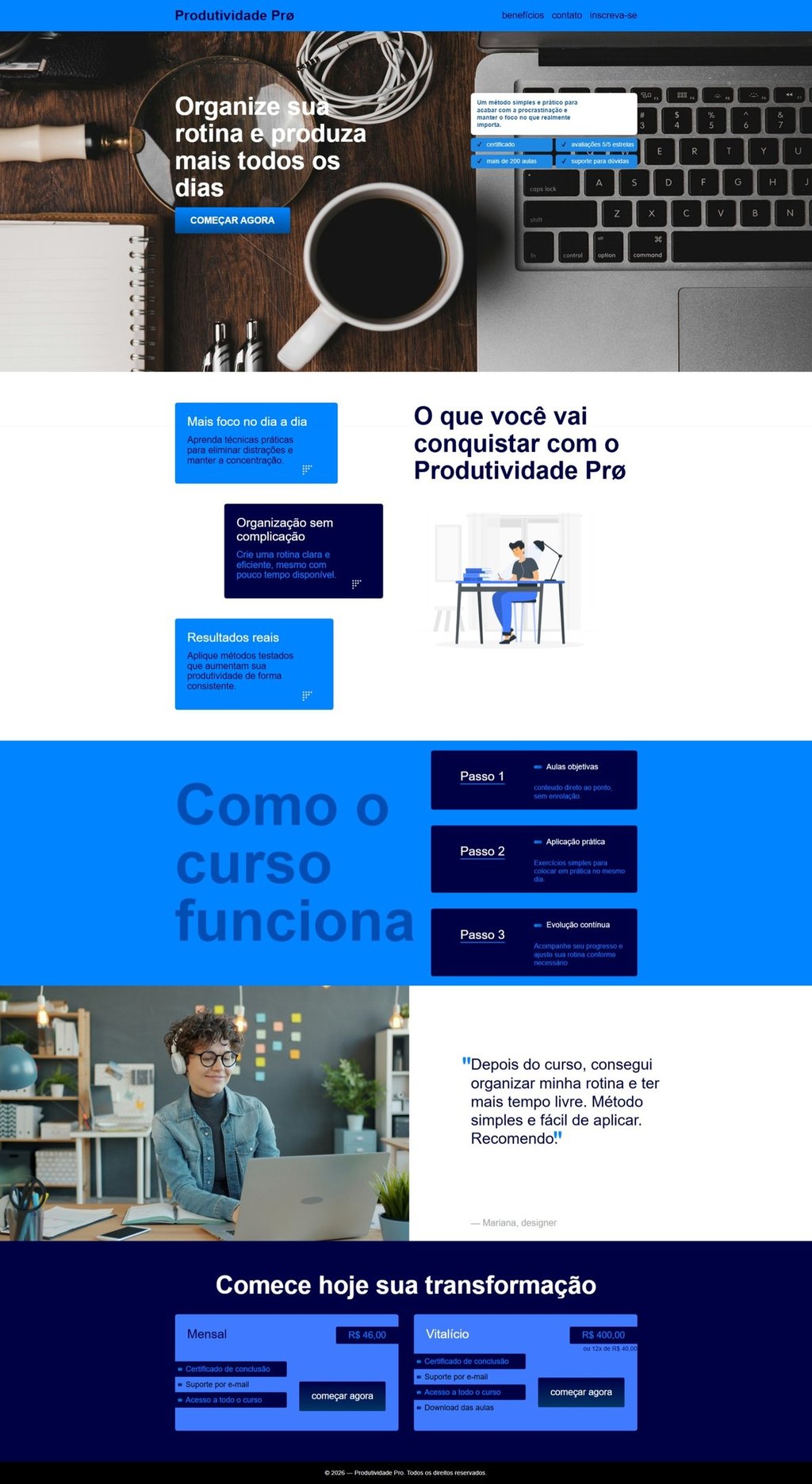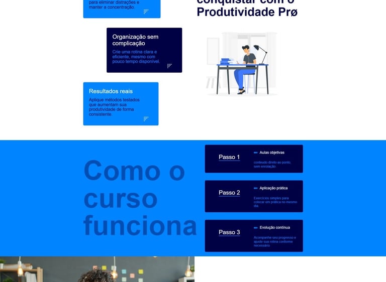 Produtividade Pro é uma landing page que desenvolvi com foco na divulgação e venda de um curso de produtividade, utilizando técnicas de design e conversão